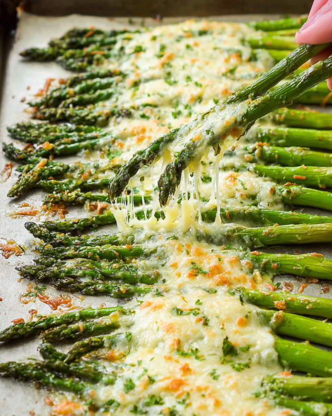 Lastly, keep an eye on the cheese while roasting. Cheese can burn quickly, so check on your asparagus a few minutes before the suggested cooking time. You want the cheese to be golden and bubbly, not charred.