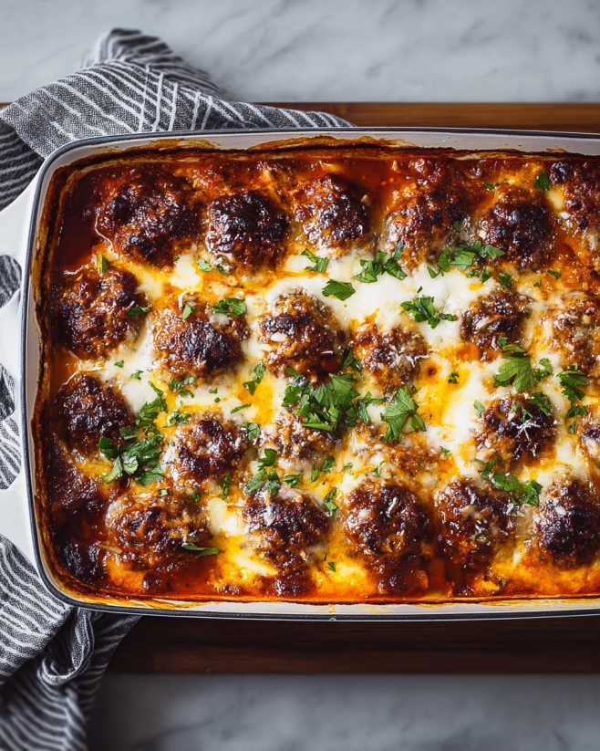 Cheesy Keto Meatball Casserole is a must-try dish!