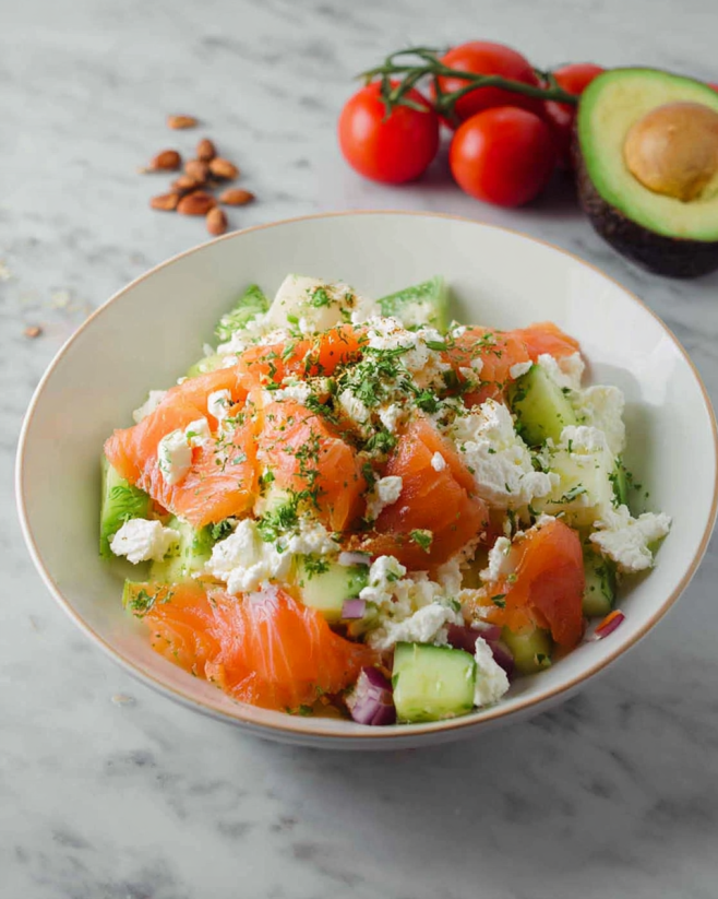Cottage Cheese Salad with Smoked Salmon Recipe. Since the salad is made with fresh ingredients, you simply mix everything together. This means you can enjoy a healthy meal without the need for cooking. It’s a great option for those who want something quick yet nutritious!