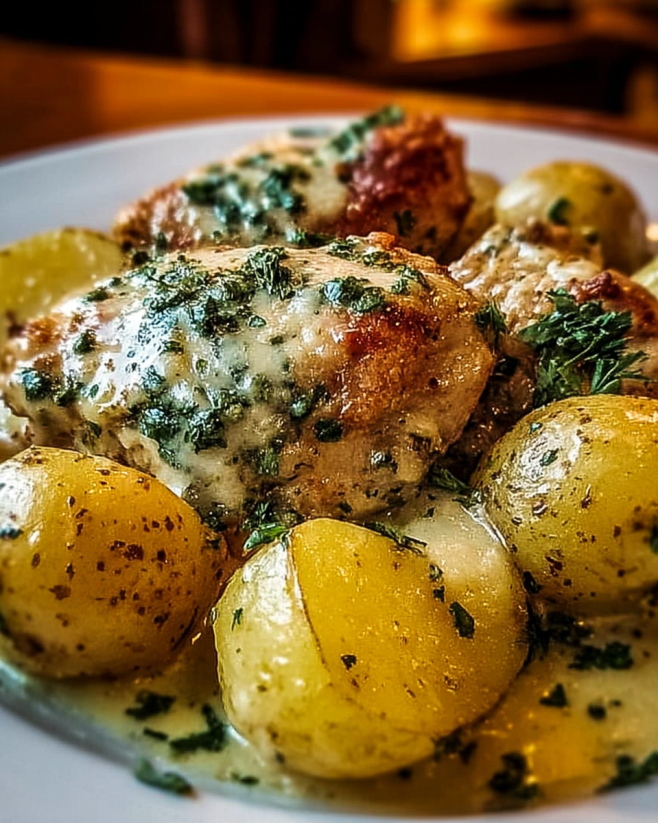 A delicious and easy meal combining tender chicken breasts with flavorful baby potatoes in a rich garlic Parmesan sauce, perfect for busy weeknights or cozy weekends.