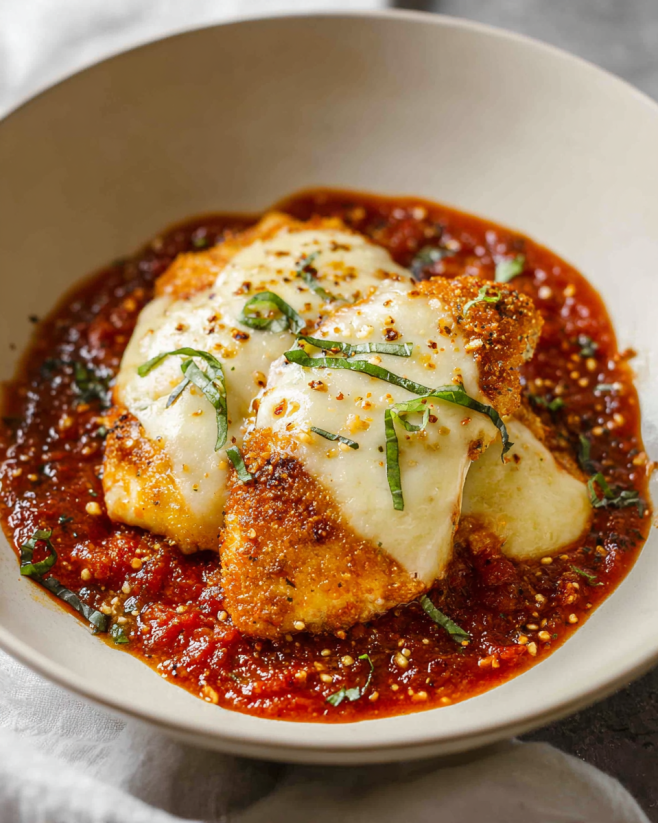 This Keto Chicken Parmesan Recipe is not just about being low-carb; it’s also about taste and texture. The chicken is juicy and flavorful, thanks to the seasoning and the crispy coating. The marinara sauce adds a tangy richness, while the melted mozzarella cheese brings everything together in a gooey, comforting way. Plus, it’s easy to prepare, making it a perfect weeknight dinner option. Whether you’re cooking for yourself or entertaining guests, this dish is sure to impress everyone at the table.