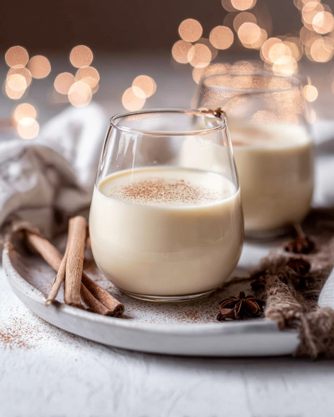 • Chilled Glasses: Serve your eggnog in chilled glasses to keep it refreshing. You can place the glasses in the freezer for a few minutes before pouring in the eggnog.
