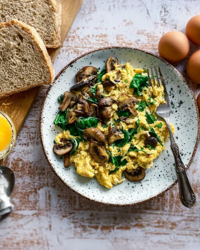 Scrambled eggs are a classic breakfast choice, loved for their simplicity and versatility. By adding mushrooms and spinach, you elevate this dish to a whole new level. The mushrooms provide a rich, savory flavor, while the spinach adds a pop of color and a boost of vitamins. Plus, this dish is quick to prepare, making it ideal for busy mornings or leisurely weekend brunches.