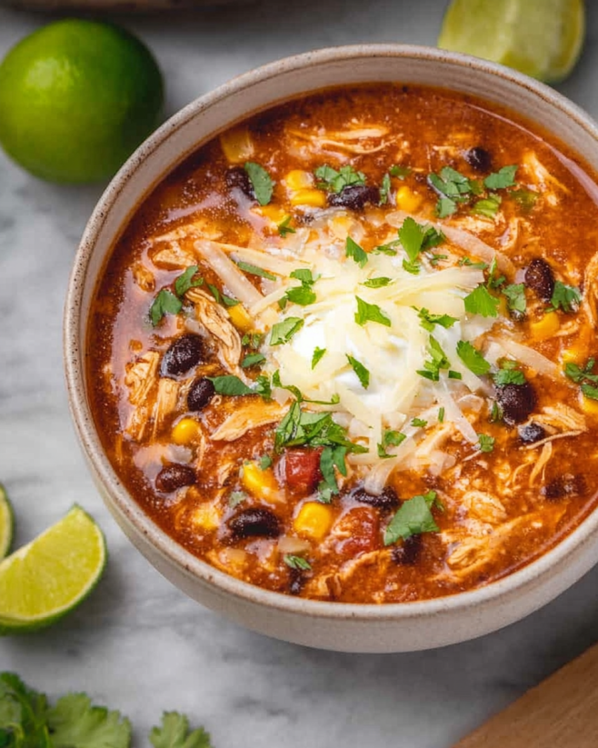 Hearty Chicken Taco Soup warms your soul and belly.